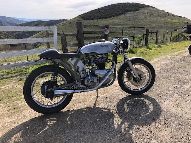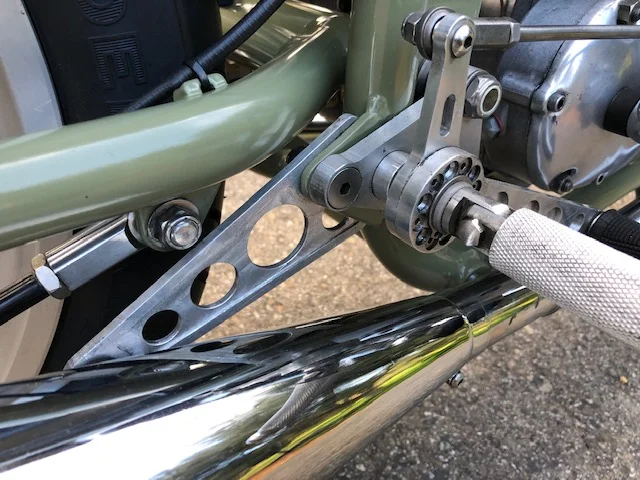 The swingarm pivots on tapered roller bearings and I made the swingarm and hardware, so the pivot axle itself was an easy project in comparison. There was not a lot of stock Norton or Triumph hardware on this bike.