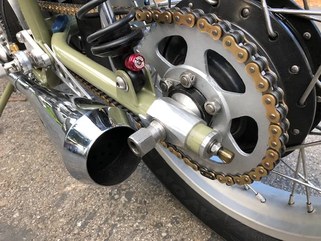 Yes. The spot my feet wanted to be was right over the tube, so I built that bridge piece that spanned those three holes/mounts. There's a nut on the axle, under the bridge piece in addition to the nylock nut on the outside.Is that aluminum plate bolted to the swing arm pivot?