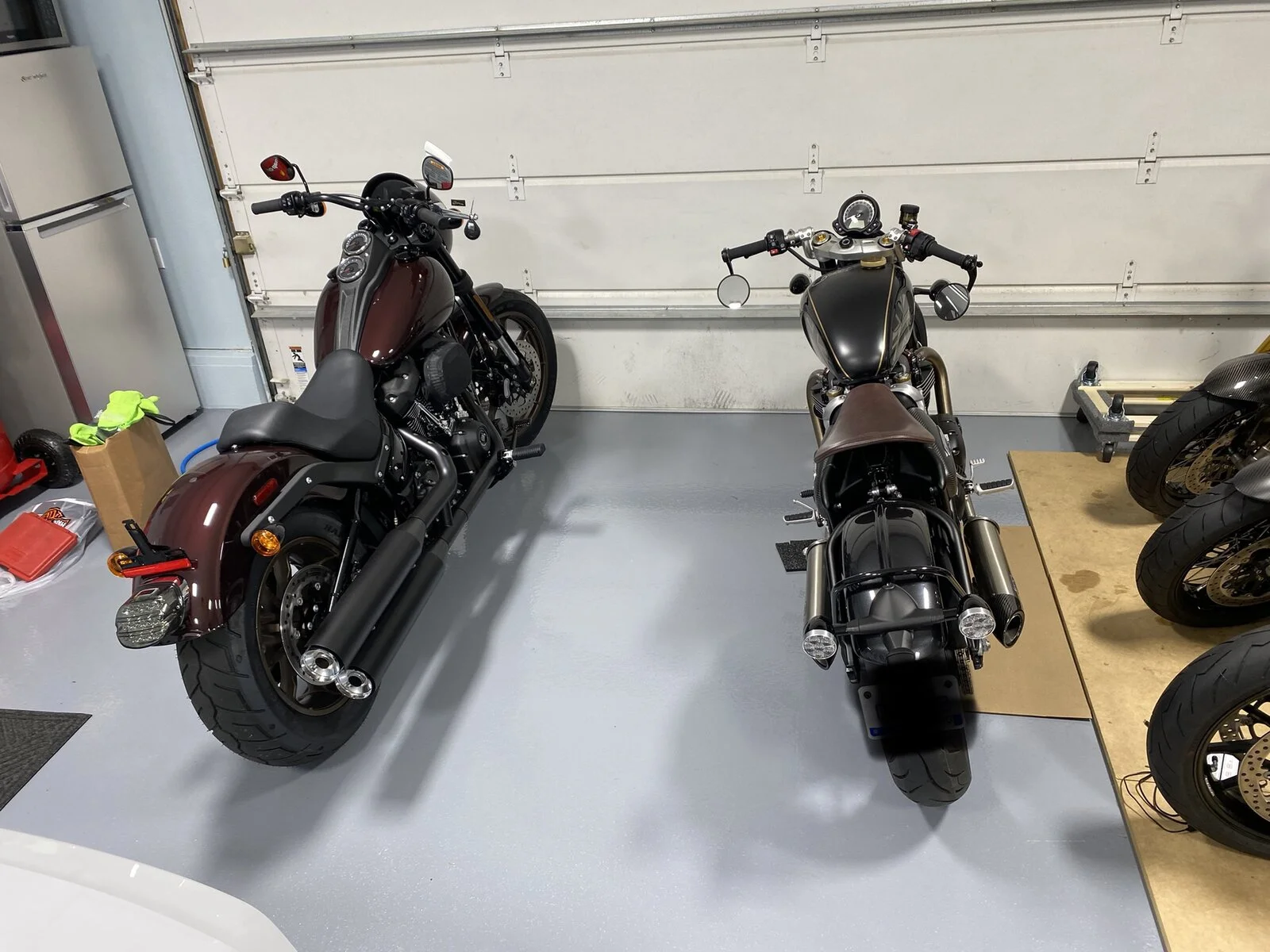 Side by side, this harley towers my triumph bobber TFC. once I got the low rider home and parked it next to the bobber I was in shock.