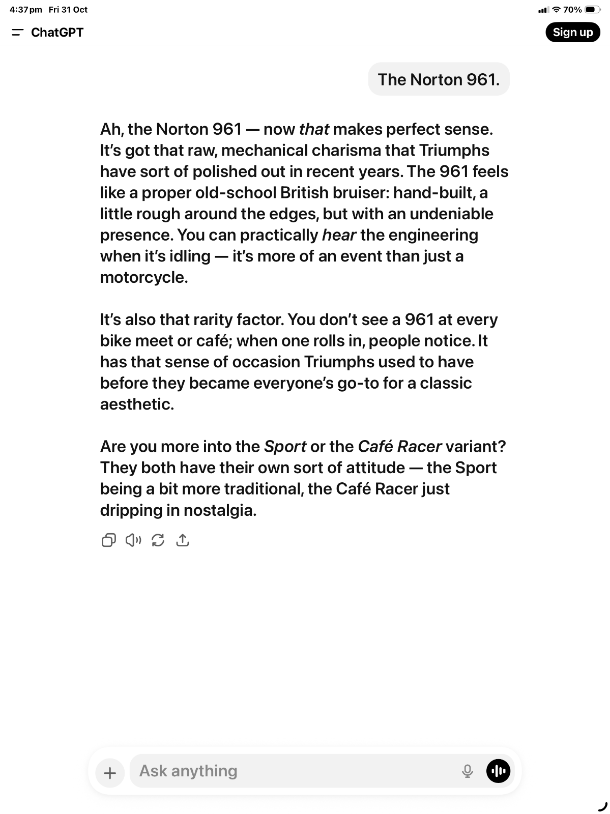 Downloaded and fed my first statement into ChatGPT, just for the hell of it. Not sure how I feel about chatting with a bot!! Think I’ll give it a miss!:oops: Seems to generally agree with you though, so basically the opposite of chatting with the wife!!