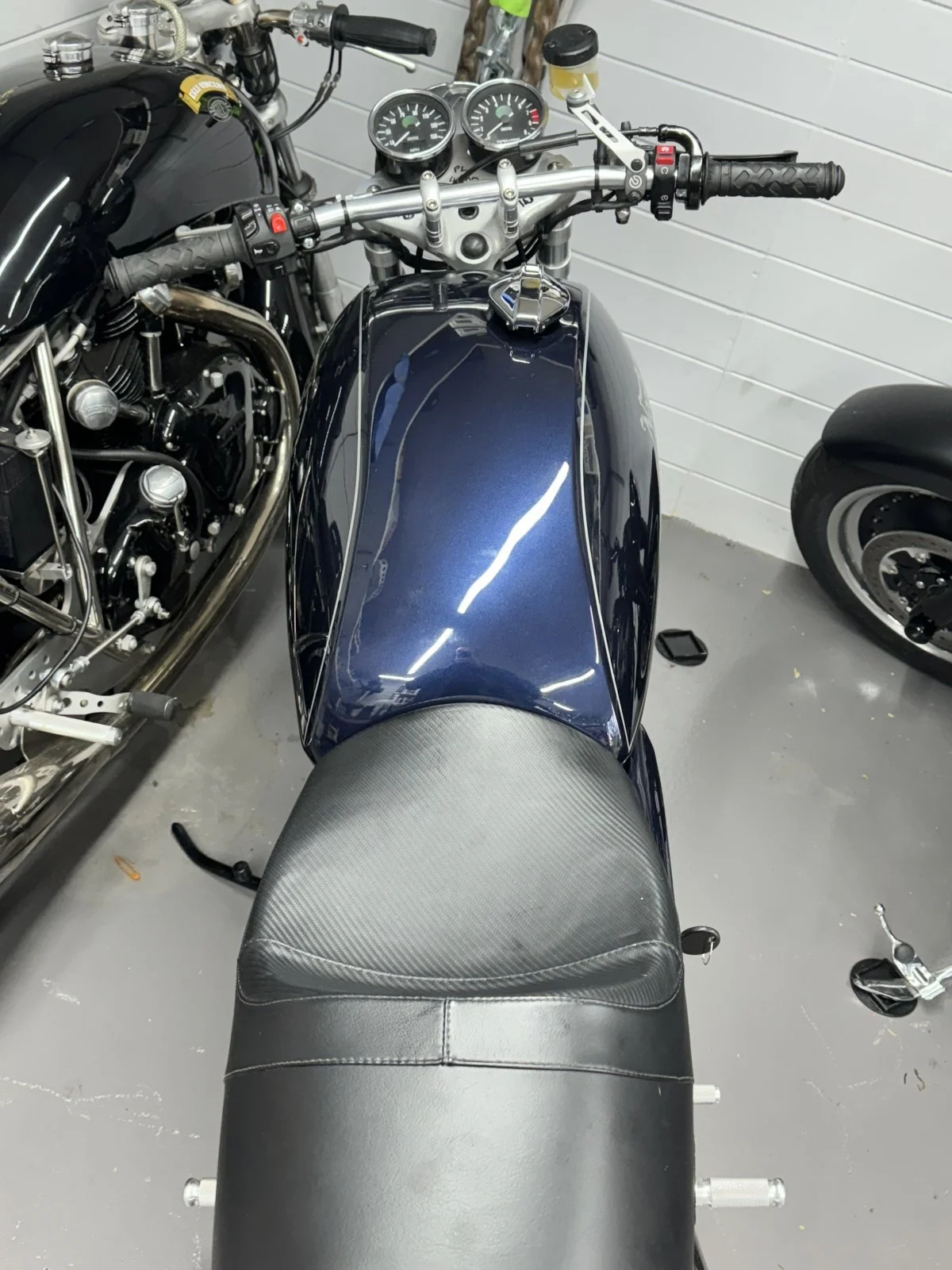 Jerry,I put the interstate tank back on my mk3 after Jim C fixed it. I put fuel in and it’s not leaking. Also, removed the smiths electronic speedo and put a restored magnetic one. Also, switch back to original indicators / turn signals. Fitted a new headlight shell as old one was not fitting right. Changed all oils. I am now ready to ride and it started snowing, here are pics