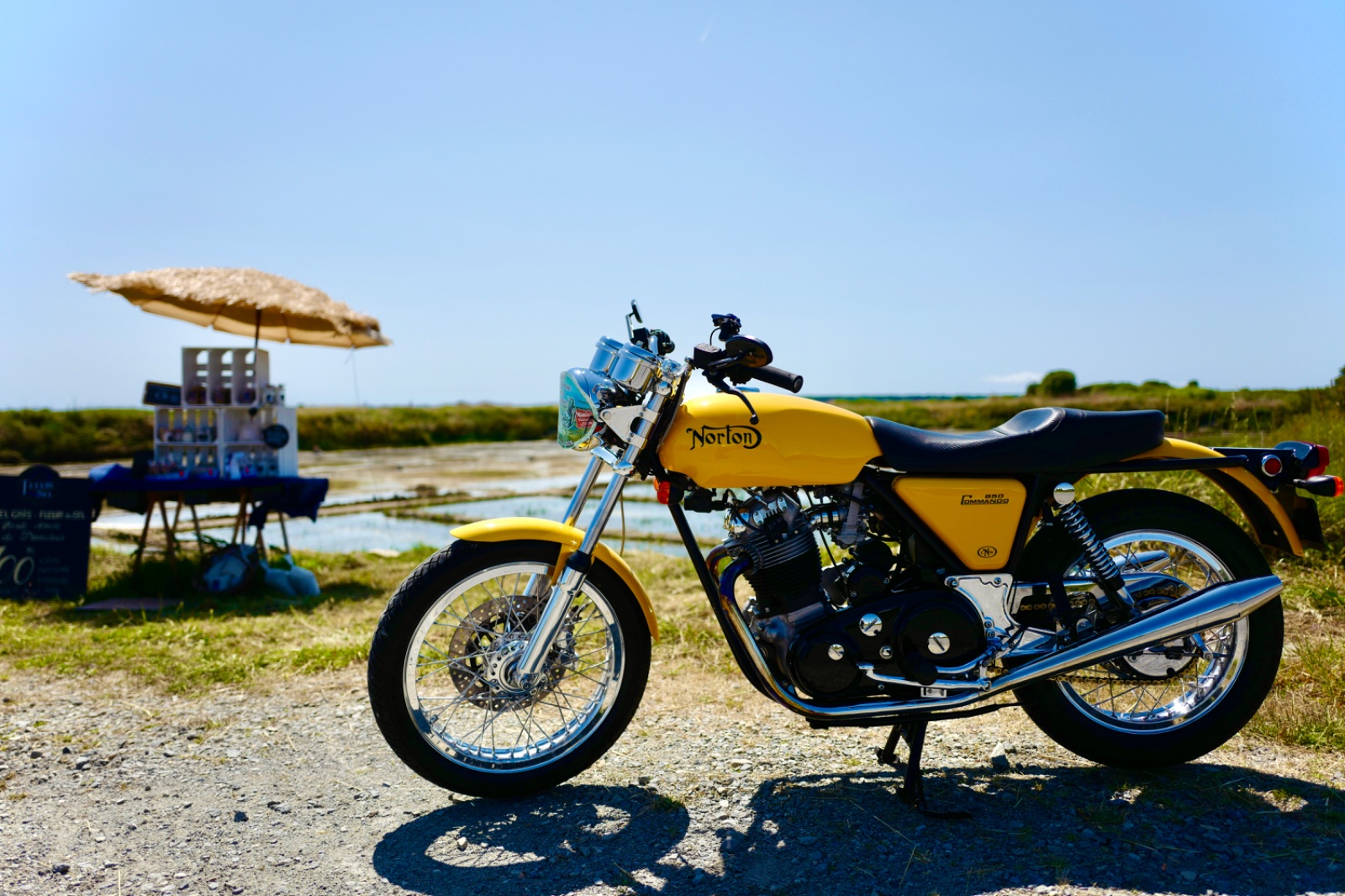 Meanwhile on todays ride to Vannes, fifty miles west, two of us nearly got there when friend’s 72 Commando Alton stator coils starting coming apart. We got nearly all the shrapnel out, but had stopped charging, so bought a spare battery for his homeward journey to Southampton and got back to base just now.