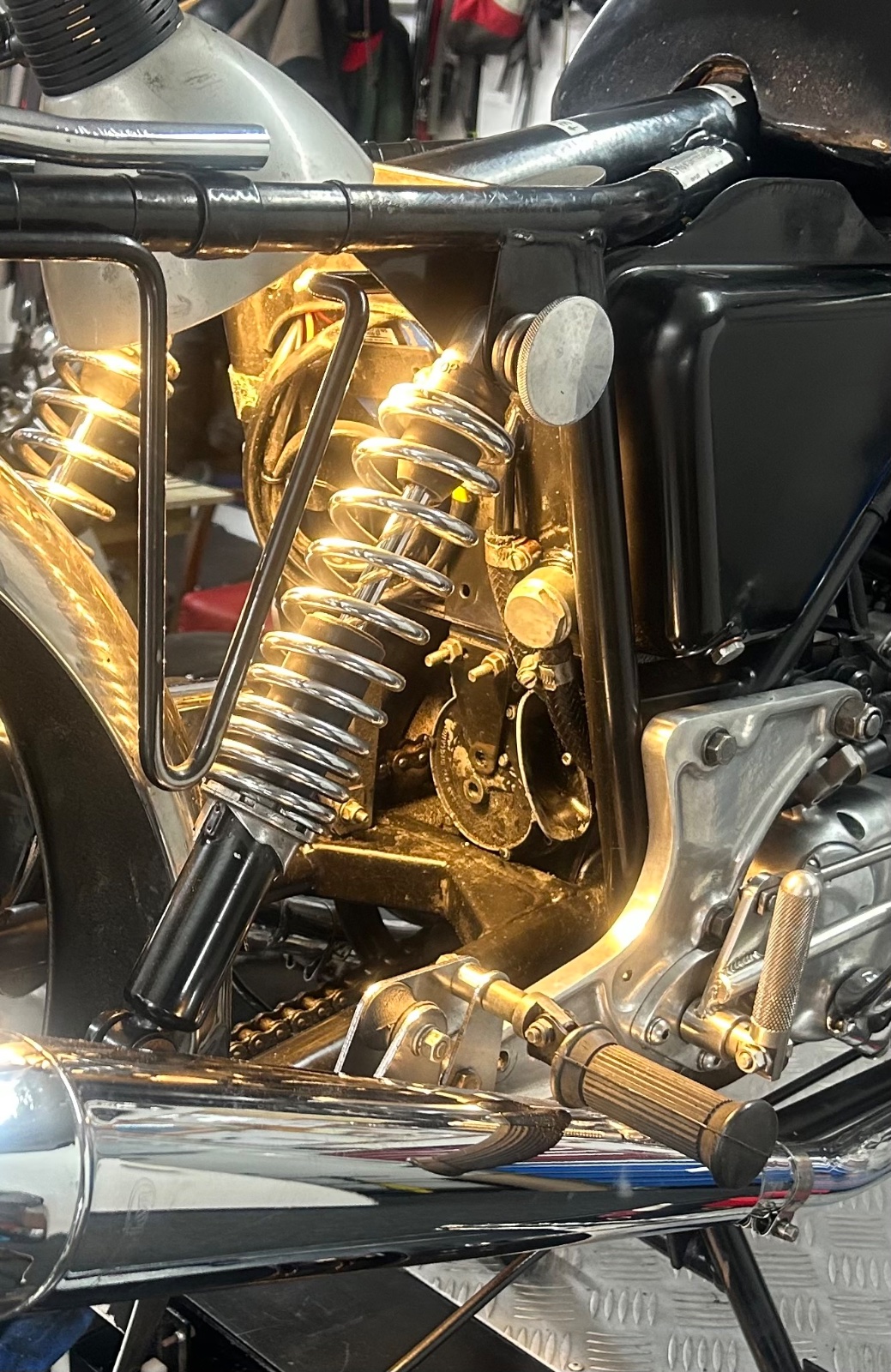 One of the welds on my right (Emgo) muffler had (some time ago) de-welded. There was no damage at all - and also no sign of a weld. I removed muffler and took it to Norton Club member who has a nearby welding shop. He did a beautiful job-no damage to chrome at all. Last week I reinstalled muffler. Today I had breakfast with some people and then went to a British car and bike show in a Very Upscale Neighborhood about 25 miles away. Norton is running great, but the primary case has started to leak. (It's a NORTON!)