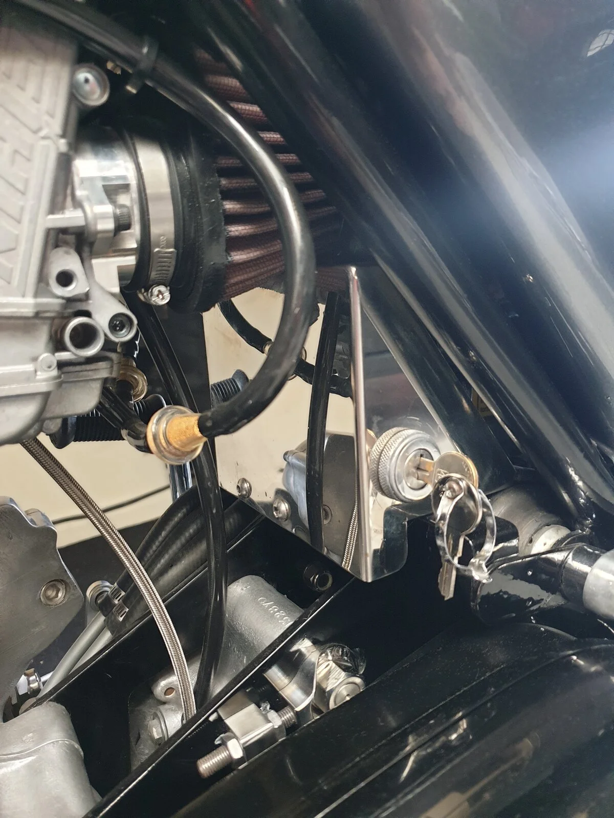 Working on a new ignition cylinder bracket to go with my Mikuni. I have your basic garage shop tools and this so far is what I have come up with. Still need paint but autoparts were out of what I wanted. Any suggestions