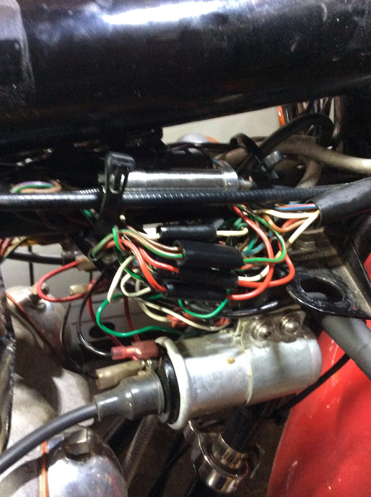So, took a look again at the bike and this time when I replaced the 20A fuse, there was a "poof" sound and smoke and all lights went dead. I also noticed that the Earth connector dangling by the Zener made a slight spark when it hit the Zener. I remounted the Earth connector by the Zener to the frame. I also took the tank off to investigate that "poof" and smoke. I found that the connector bundle was quite ugly and worn. Likely the suspect? Maybe. I redid it with new connectors just now. Hopefully re-assembled the wires to mate with the correct wires in the bundle...