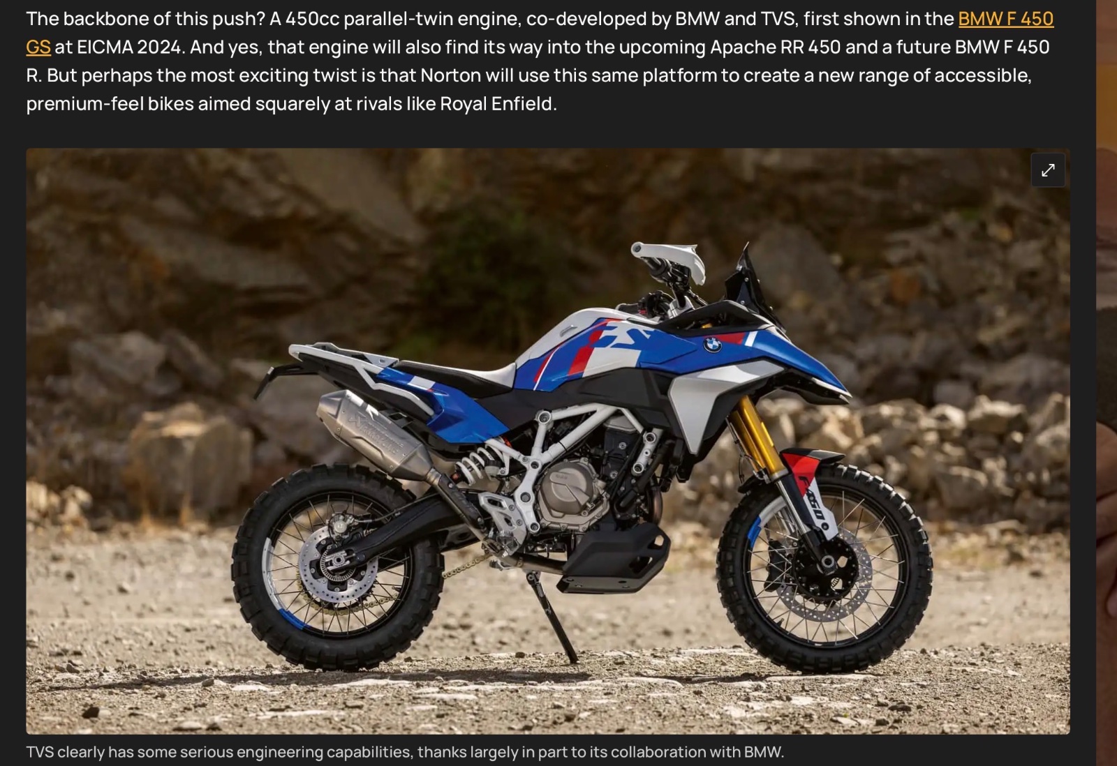 Initially a 450 range based on an engine already in service with BMW, but in a Norton frame et al’ - badged Norton not TVS. Unless I’m missing something?