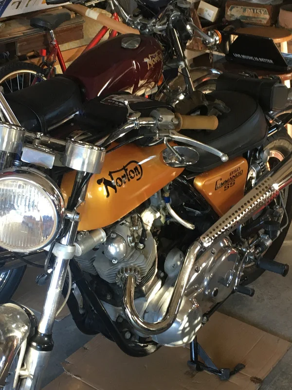 My Norton story is a bit bizarre! I used to read everything & follow up all the small ads. I used to have a big scrapbook of cuttings & intresting bits, names ,dealers etc all the people I had dealt with. I found an add that read " has anyone else experienced the sensation of riding pillion on a Norton with open pipes, thrashing through the night. Exhaust flaming, camping gear on a sidecar platform. I was 12 years old & my uncle took me on holiday to Devon. The thrill has never left me. Couldn't figure out if he had anything to sell anyway I eventually followed up just to ask. The add had run a couple of months before & he was dissapointed as he hadn't had a response. Wouldn't talk just wanted me to come & see him. Turned out he had brought a pile of bits with the idea of going classic racing. Only at that time they didnt allow the 850 under eligibility rules, so the pile sat. He was delighted that I had shown an interest & come to see him. A deal was struck & the seats removed from my Little Nissan & I did a couple of 200 mile round trips to get the stuff home.