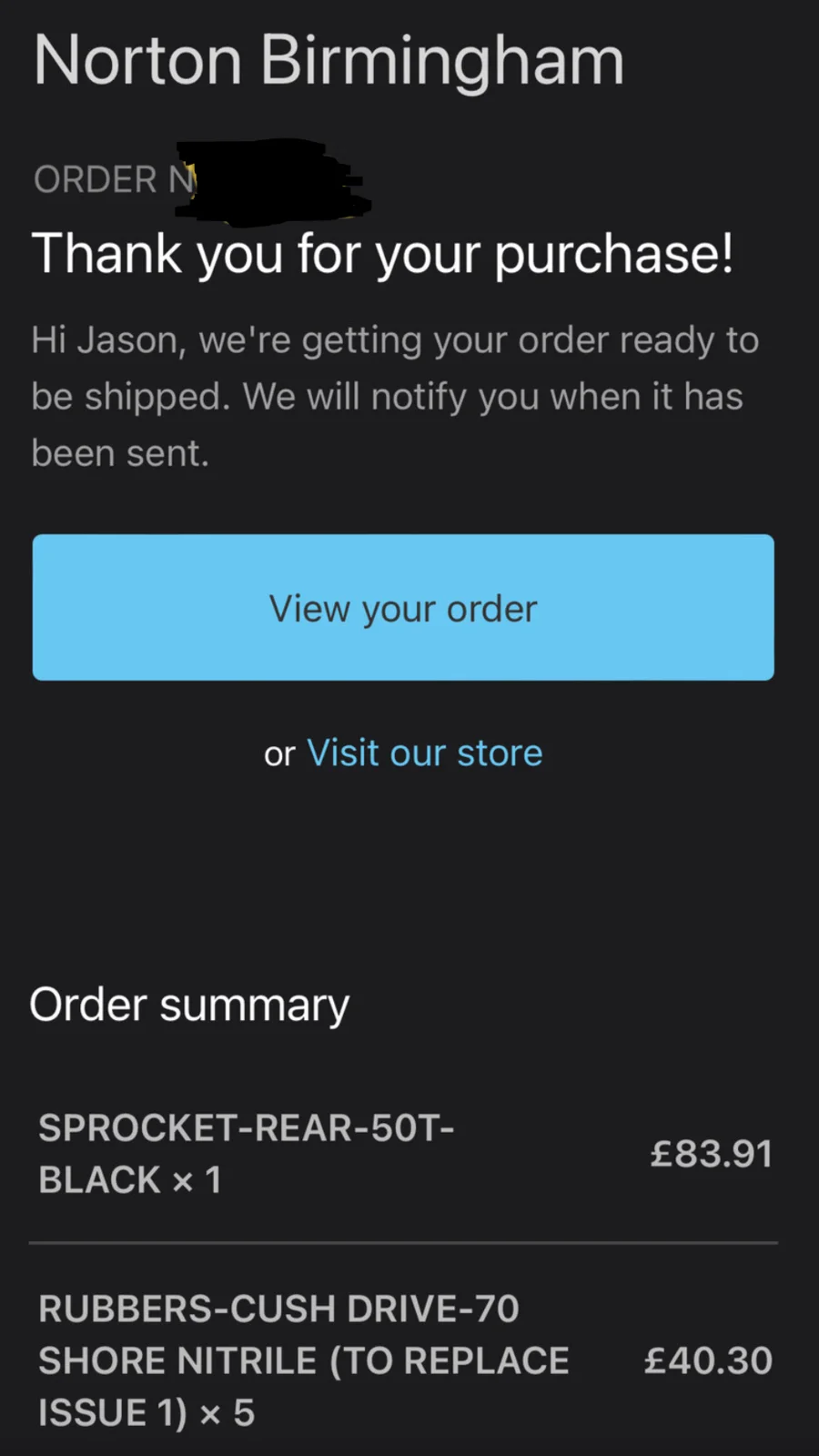 "Our Parts Department will shortly open, and when this happens, we will sell parts that are fitted to our own Norton Commando Classic 961 only. For the reasons set out above we will not be able to guarantee that they will fit your bike, nor that they are suitable or fit for purpose on your motorcycle. "
