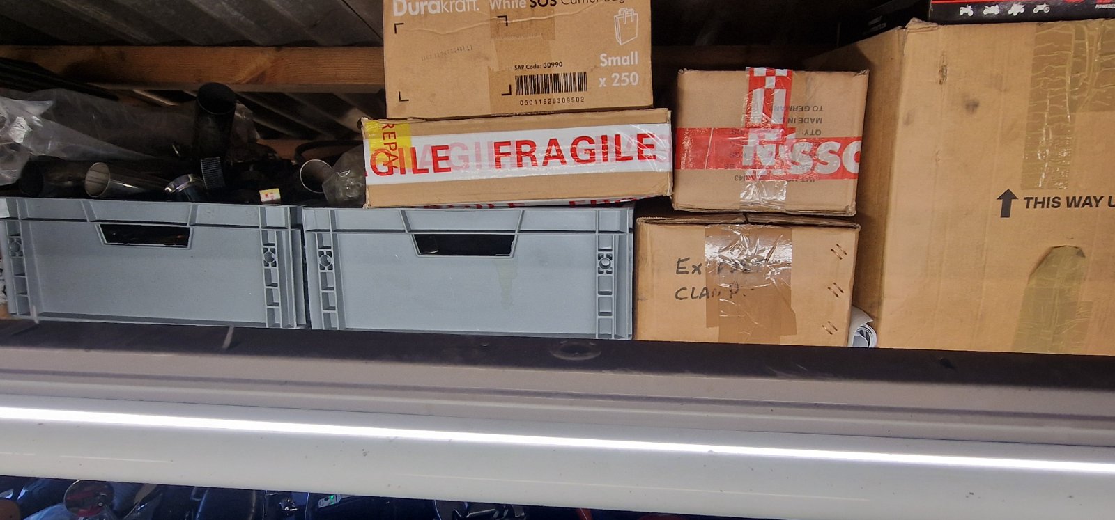 Next up, parts. Yes, I have parts...some parts anyhow. No, I'm not a mail order business. No, those parts are not kept on a stock check file, where I can just grab it and pass it to the mail room to package and ship out. I'm a one man band working in a shed. Due to space, everything Ive got is packed away in boxes, either in the workshop (see pics) or stowed away in the loft of the house. I will gladly help anyone out if they need even the smallest part or gasket, but you must understand that at present I'm working ridiculously long hours for Motorvated workshop customers, as well as trying to weave in some family life inbetween. If someone needs a small part, I need to find it, package it, lock up the workshop.....after first putting multiple bikes away, in a big game of Norton Tetris (doesn't look as bad in the pics right now as two left me this morning), and then go to the post office and queue (I will also attach some pictures of the post office queue from the other day, posting out a rocker cover gasket.....felt like covid times again). Its a minimum of an hour out of my day to package and ship a gasket...which I write off. If I need to find a part, it can tot up to a few hours out of my day. If its an overseas shipment, then I also need to fill out the customs declarations too.