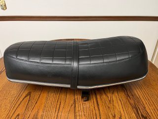 This seat may fit other years of Commandos besides 1974. This seat is made in the U.K. by R.K. Leighton, has a passenger strap, a checkered top and retails for $425 from Baxters, part # 06-3676.