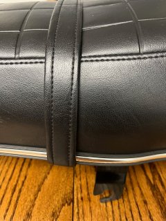 This is a 1974 Norton Commando Seat that was mounted on a fully restored 1975 MK III Commando bike that was never ridden. It was the incorrect seat for the 1975 Commando (no seat hinge for 1975 mounting) when I recieved the restored bike so I replaced it with the correct seat.