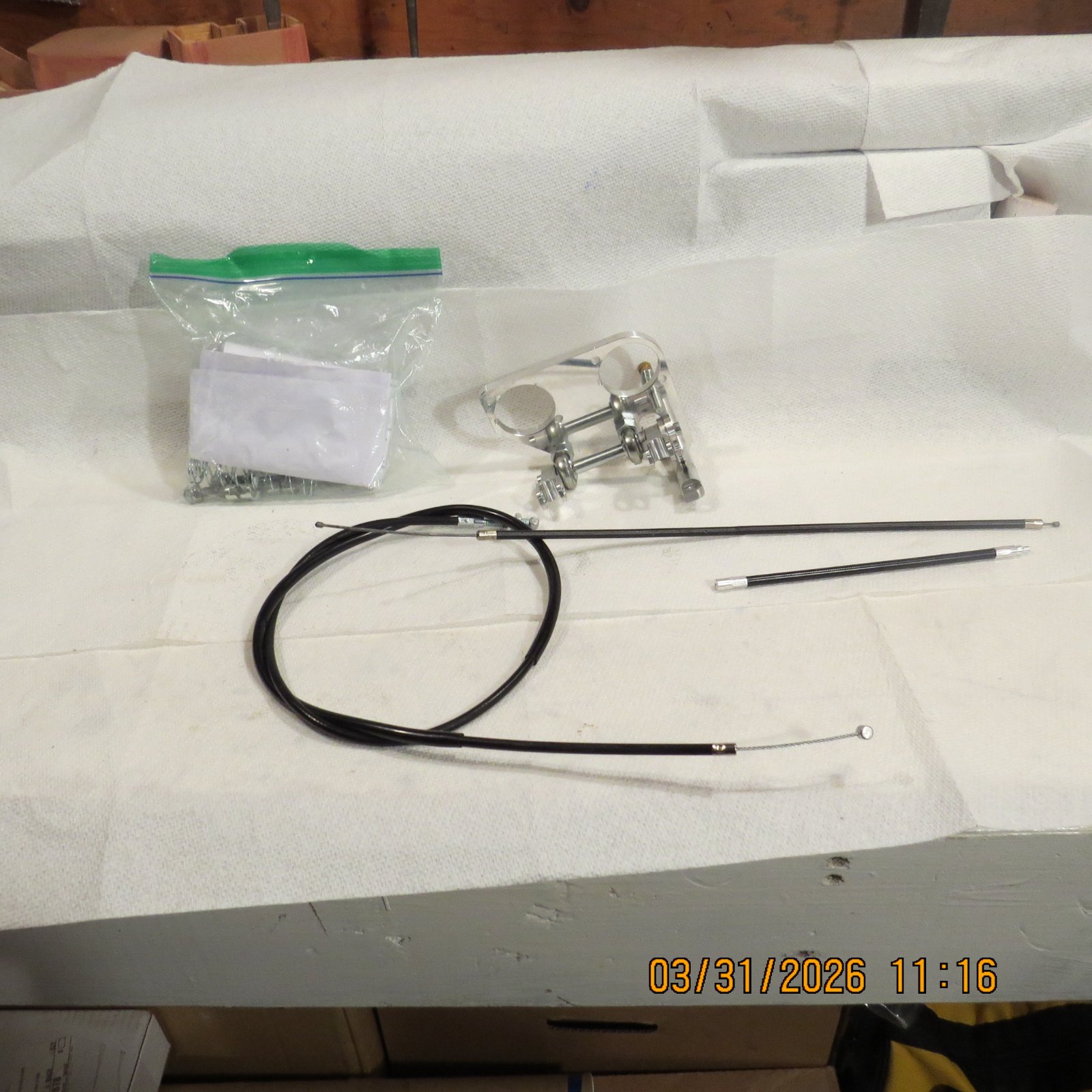 Never used. Kit for single cable control of dual Amal Carbs for Commando by Madass.