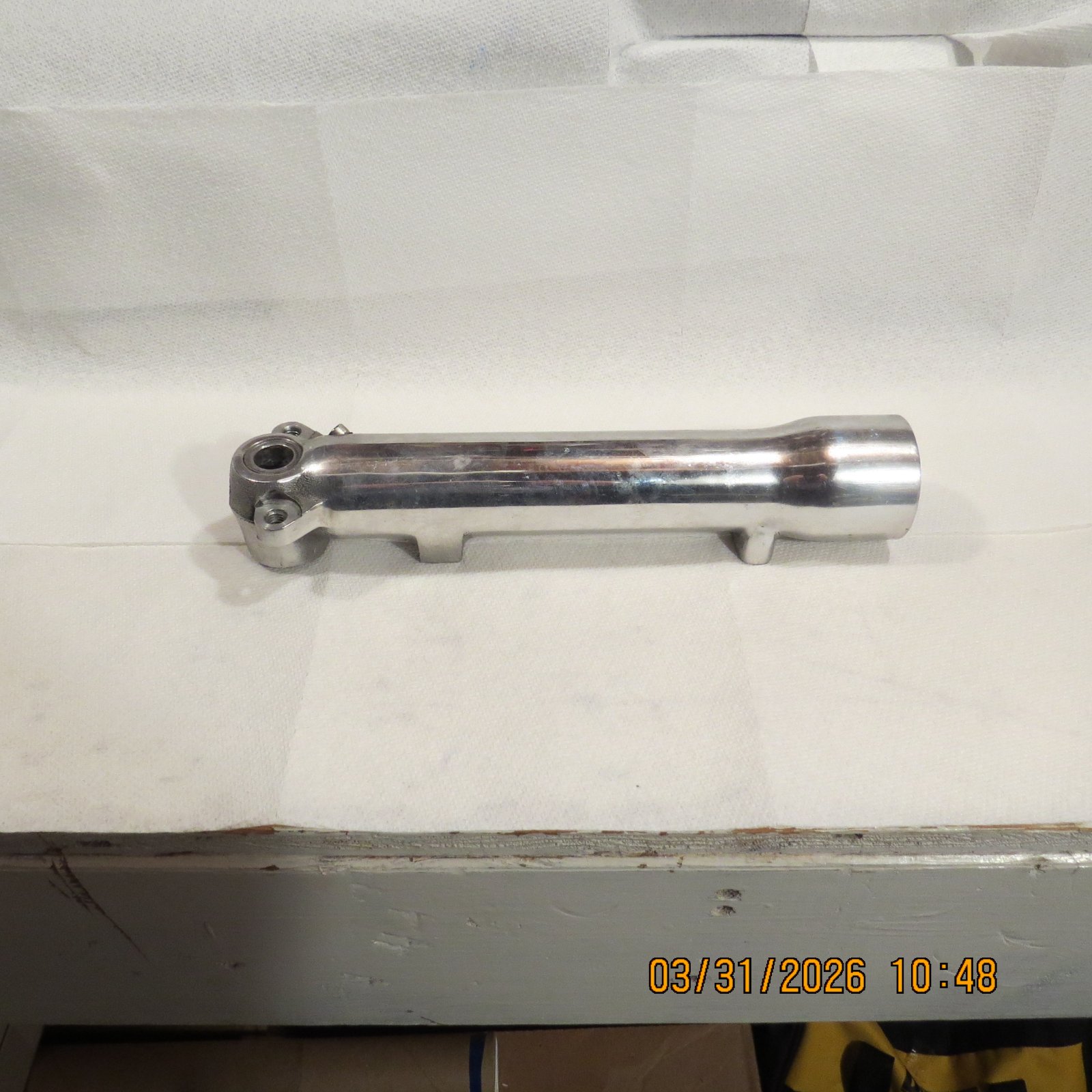 Front wheel, Excell Rim/stainless spokes by Buchanan with Twin leading shoe brake assembly, handlebar grip with wiring for brake lights and fork slider.