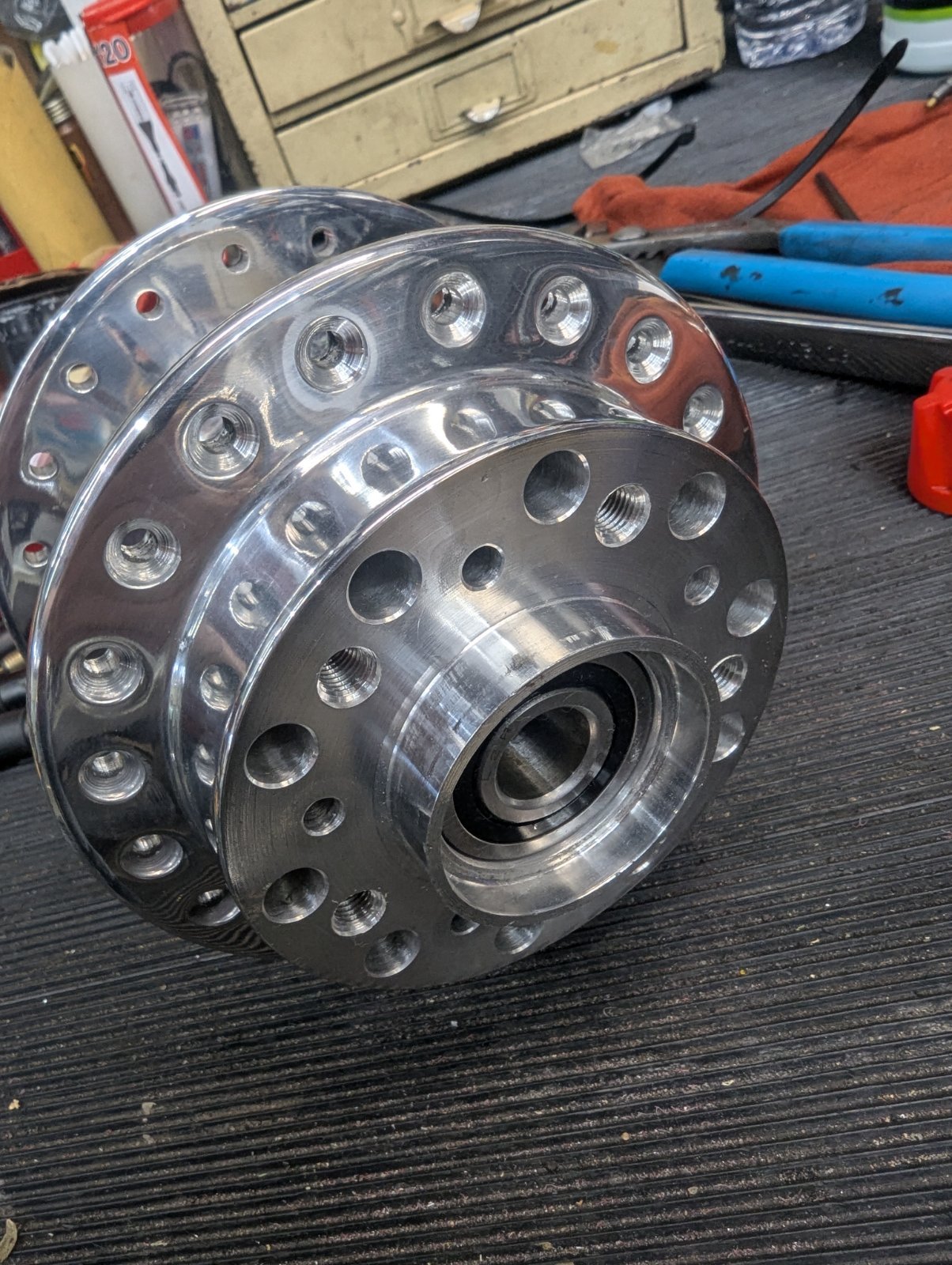 This is a brand new Commando front disc hub, EXCEPT it has been drilled and machined for the RGM oversize floating rotor.