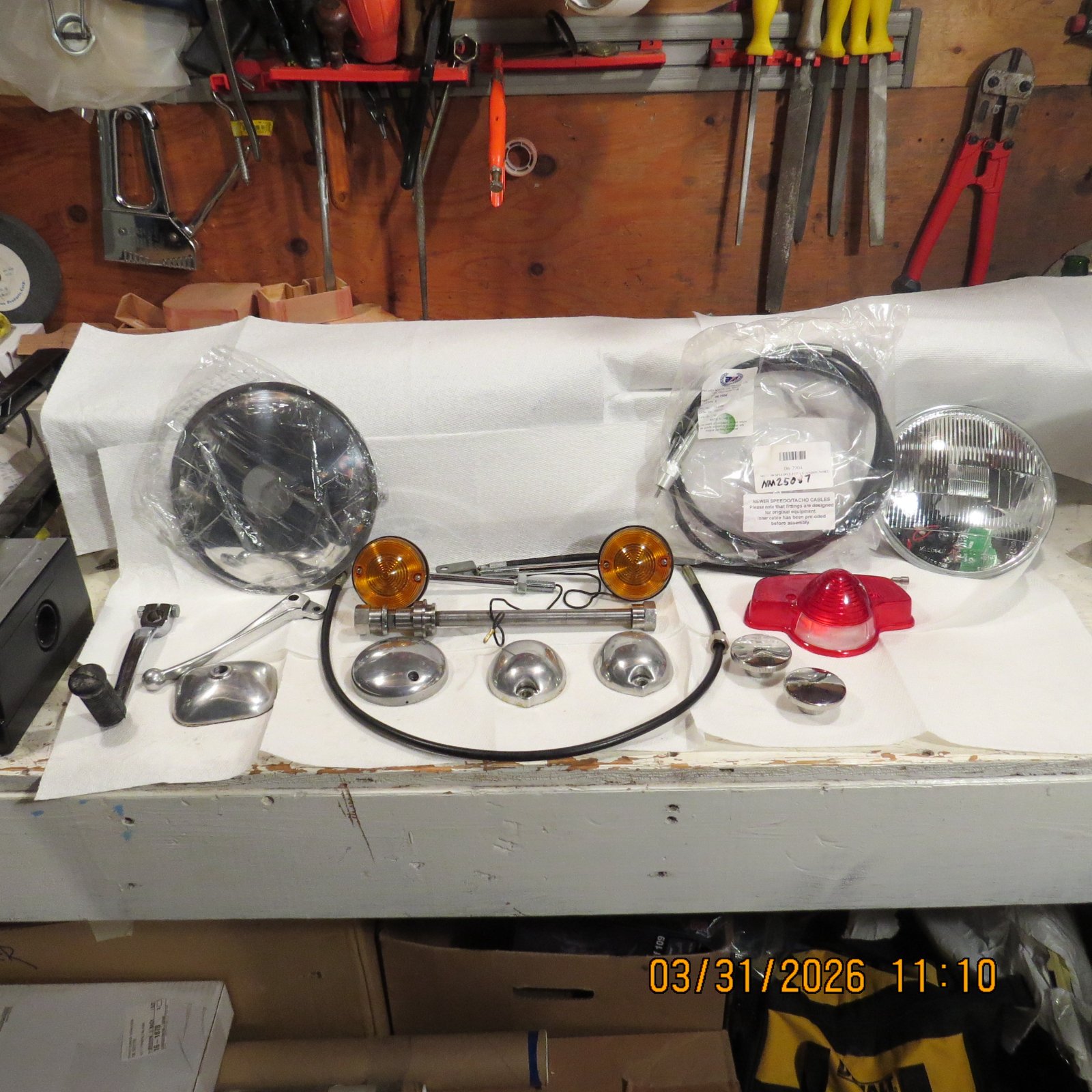 For Sale , assorted parts for a Commando, spares that I kept for my 1971 Fastback. Rear wheel cover , shifter and rubber,valve covers,timing cover,stainless seat knobs,rear tail light lens,headlight lens,three piece rear axle,Lucas signal lights,new tachometer cable, speedometer cable and rear brake cable. $150.00 plus $20.00 shipping.