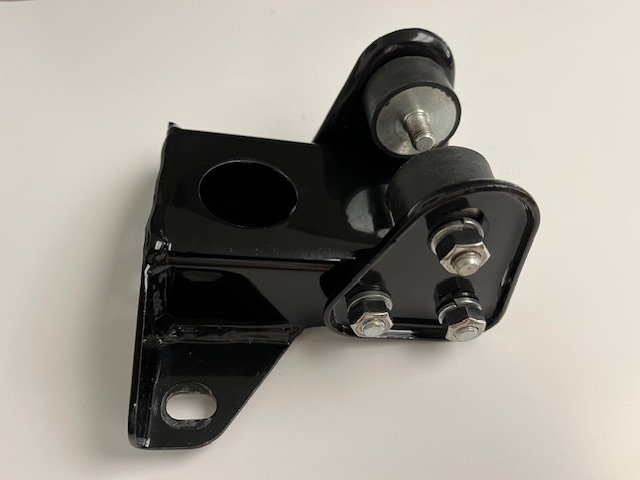 The bracket (part # 06-5459) and both side plates (# 06-1128) are powder coated gloss black. Also included are both studs & spacers, 2 rubber mounts, and 6 stainless steel nuts with lock washers.